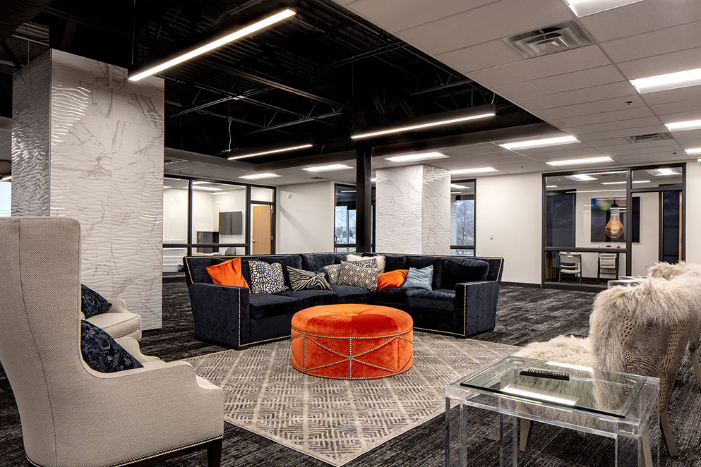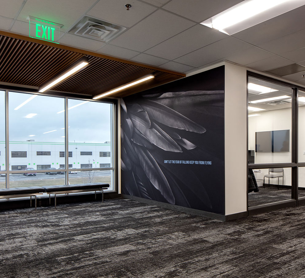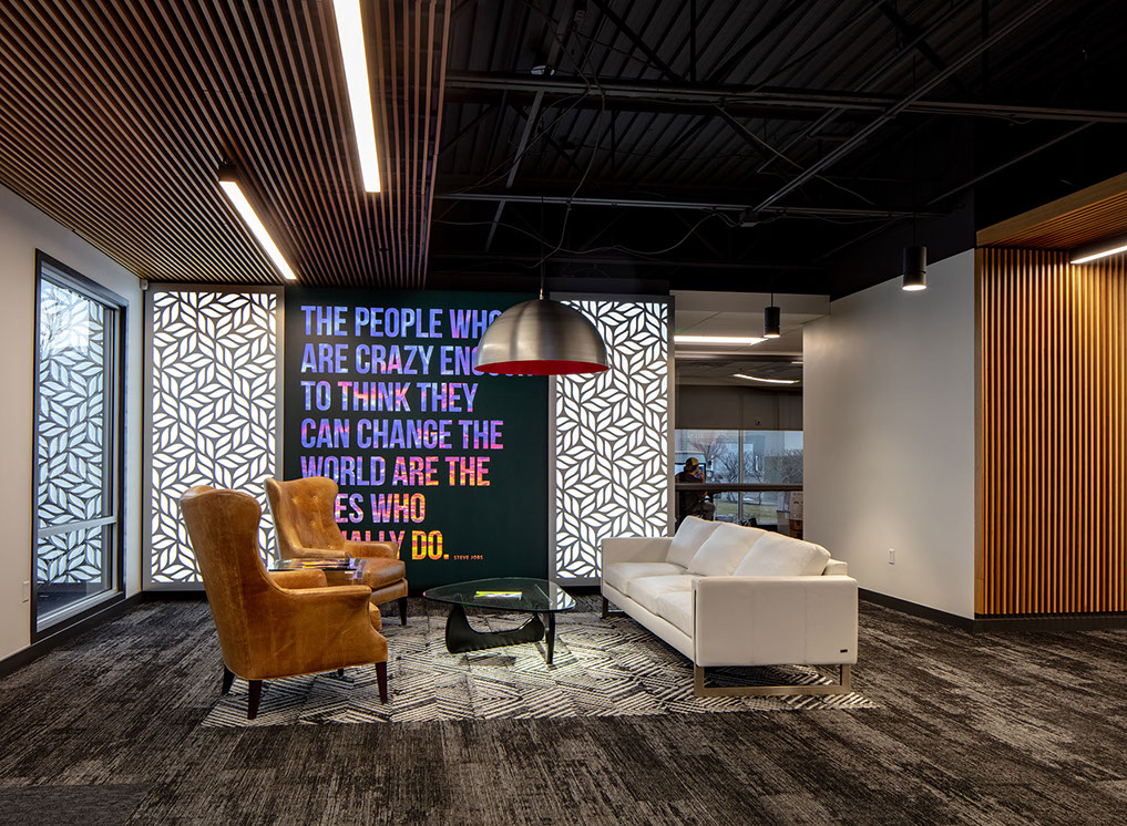 The SAA team worked with Fusion to develop a new design approach that provided a re-imaging of the interiors to express Fusion’s unique personality. Our design solution for Fusion’s space involved modernizing the interior spaces to express Fusion’s brand by incorporating unique materials throughout, such as reclaimed wood, concrete, exposed steel, wall graphics, and featured wall and ceiling panels.