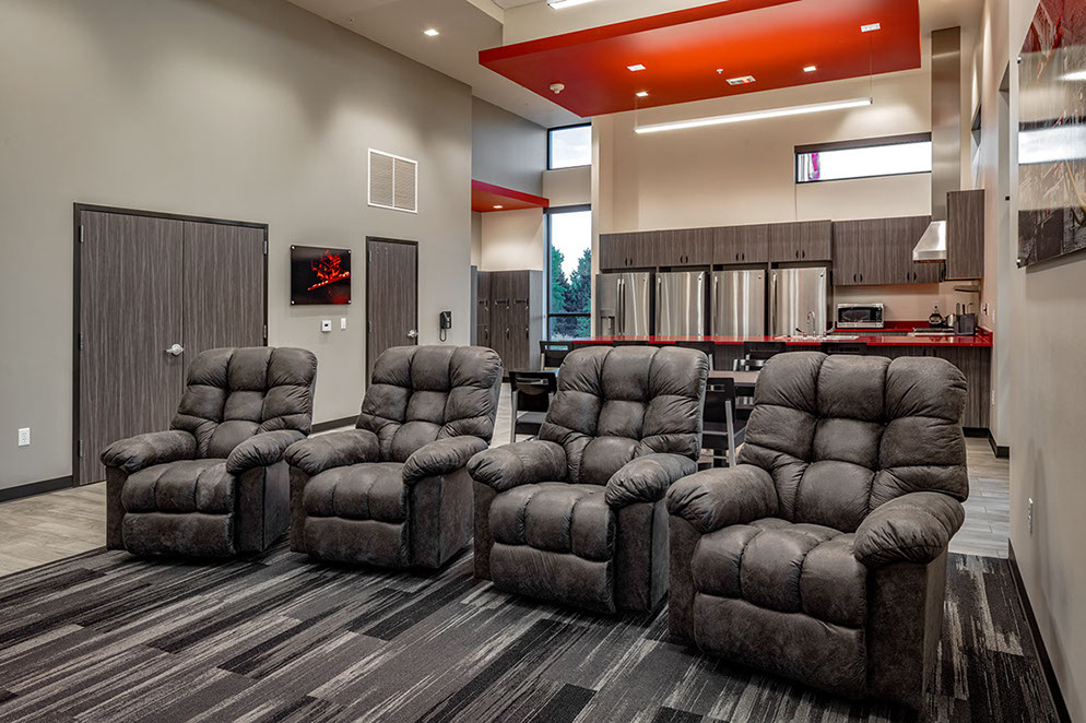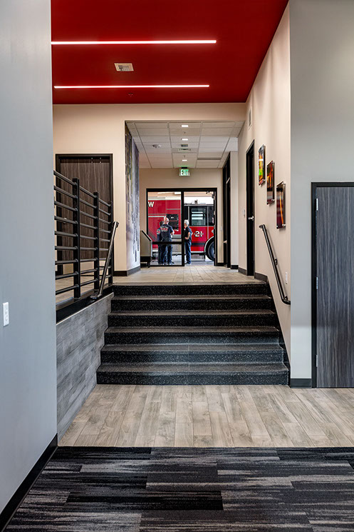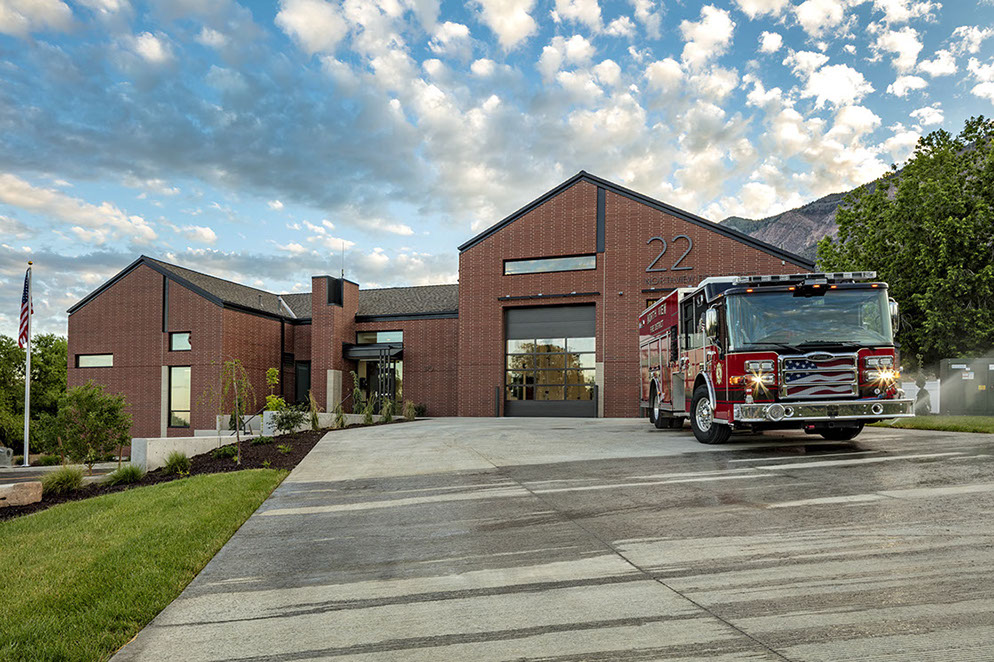 Sanders Associates Architects provided the design for the new North View Fire District Station 22 to meet the needs of the North Ogden, Pleasant View, and Harrisville communities. The station design will accommodate two flow-through apparatus bays, kitchen, dayroom, sleeping quarters for five, training room, exercise room, turn-out gear room, crew office, captain office, and toilet/shower rooms. The fire station is designed to be functional, cost-effective, and virtually maintenance-free. The fire station is designed with a sloped roof, linear windows to bring natural light into the fire station, and modular brick to tie into the residential character of the area.
