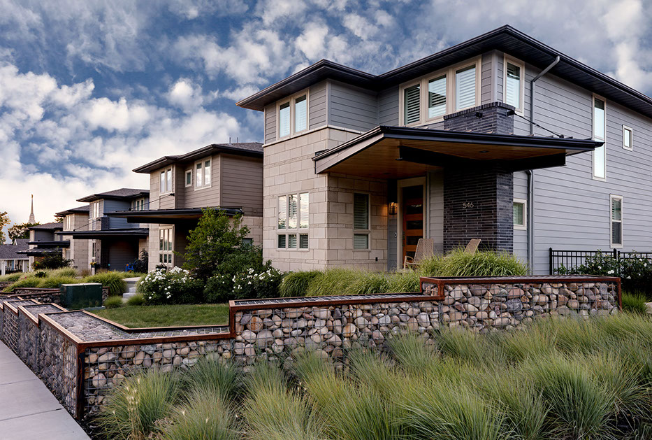 Sanders Associates Architects provided architectural services to Ogden City Redevelopment Agency for a new neighborhood consisting of a Prairie Modern style line of single family residences. This project includes six home plans, each with multiple exterior color schemes and interior packages to create a “toolkit” of affordable designs for use on 21 sites within Stone Hill.