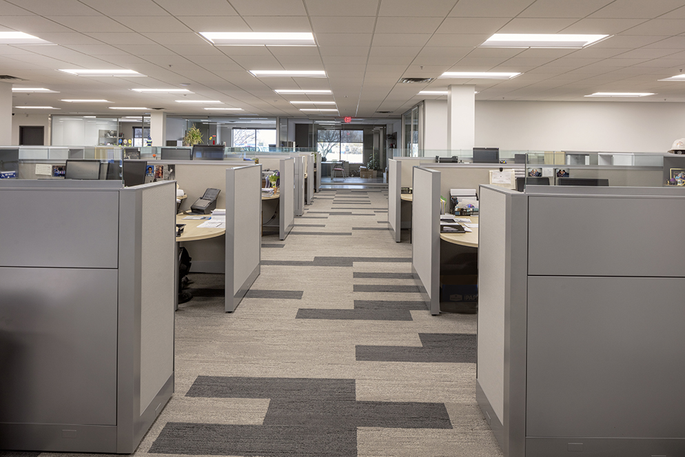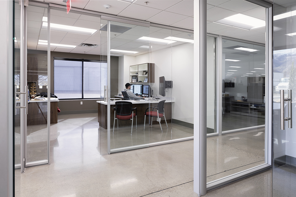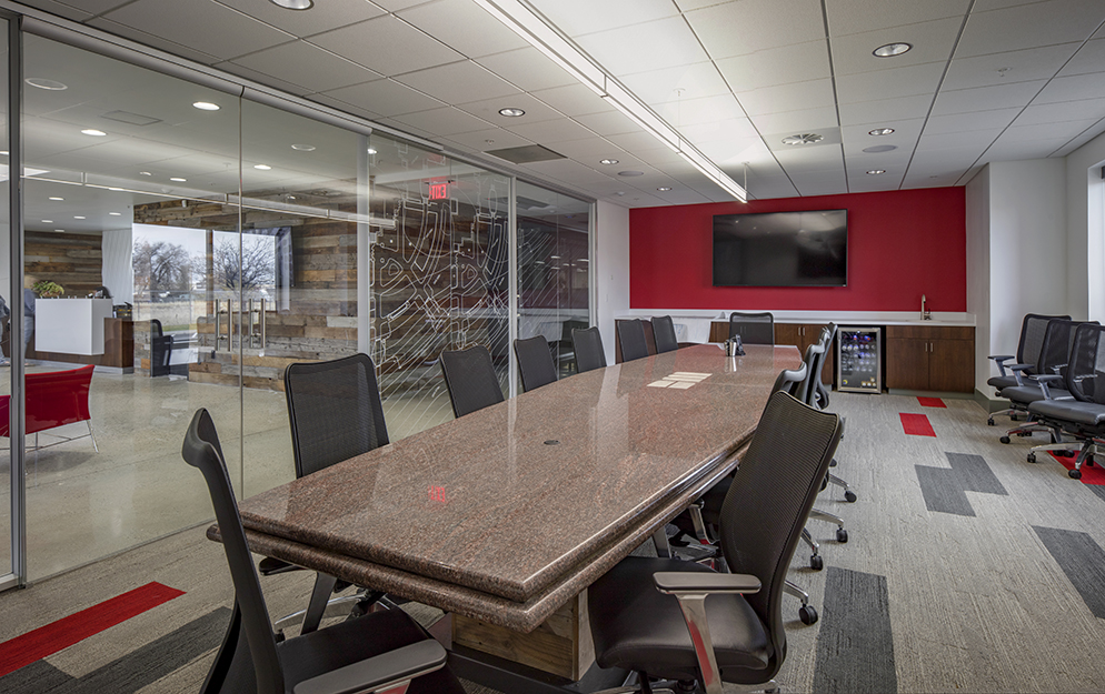In the midst of steady growth, Wadman Corporation undertook organizational changes aimed at improving collaboration among estimating, project managers, business development and corporate management. Sanders Associates Architects provided design services with the goal of creating open spaces with flexibility that would promote team interaction. To achieve a light and open feel the design incorporated full glass fronts to both perimeter and interior offices. This use of glass in the office design brings daylight into the interior of the space and aids in promoting collaboration through visual connection. Unique materials are used throughout, including reclaimed wood, polished concrete, multi-hued paints, and featured 3-dimensional wall panels.