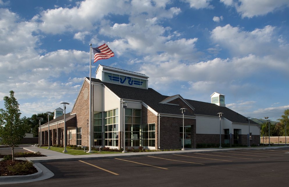 The South Salt Lake branch exemplifies these principles by alluding to domestic architectural traditions while remaining an identifiable building of business. It is built using conventional wood framing with stone and E.I.F.S. veneer and asphalt shingles. The interior utilizes finishes that evoke a warm and inviting work place.