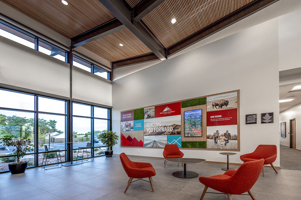 With the member experience in mind, we found inspiration for the building design in the movement of the mountain formations. A sense of movement through the building is achieved with color, materials, transparency, and opening the highpoints to natural daylight via high linear windows.