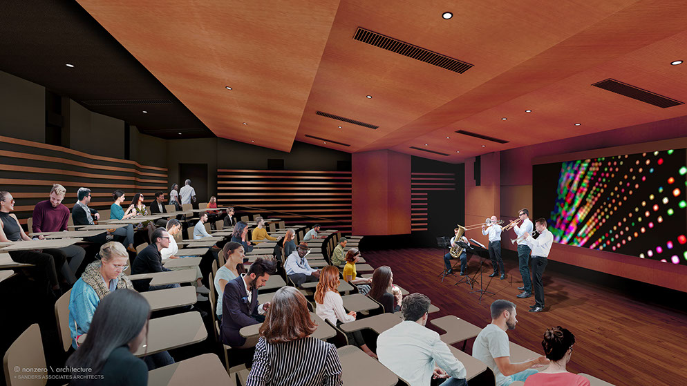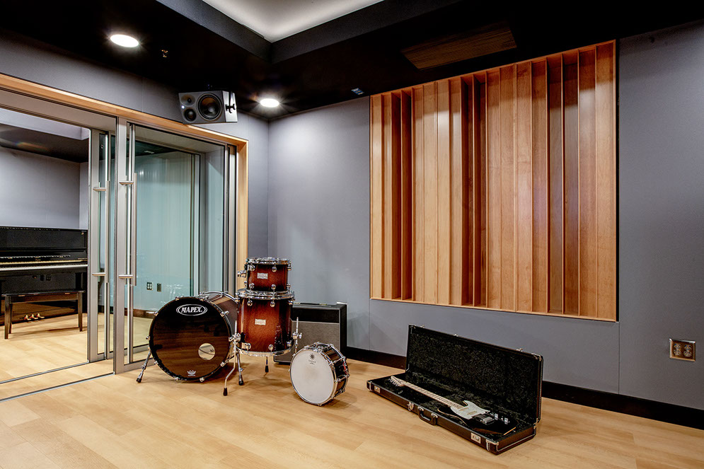 The audio production teaching suite at the Weber State University Val A. Browning Center for the Performing Arts was built in response to WSU desire to offer curricula in music recording. The teaching studio was inserted into an existing 456 square foot classroom along with the renovation of the adjacent lecture hall into a state-of-the-art performance space. Equipped with a state-of-the-art SSl console, the suite features an isolation booth and central control room.